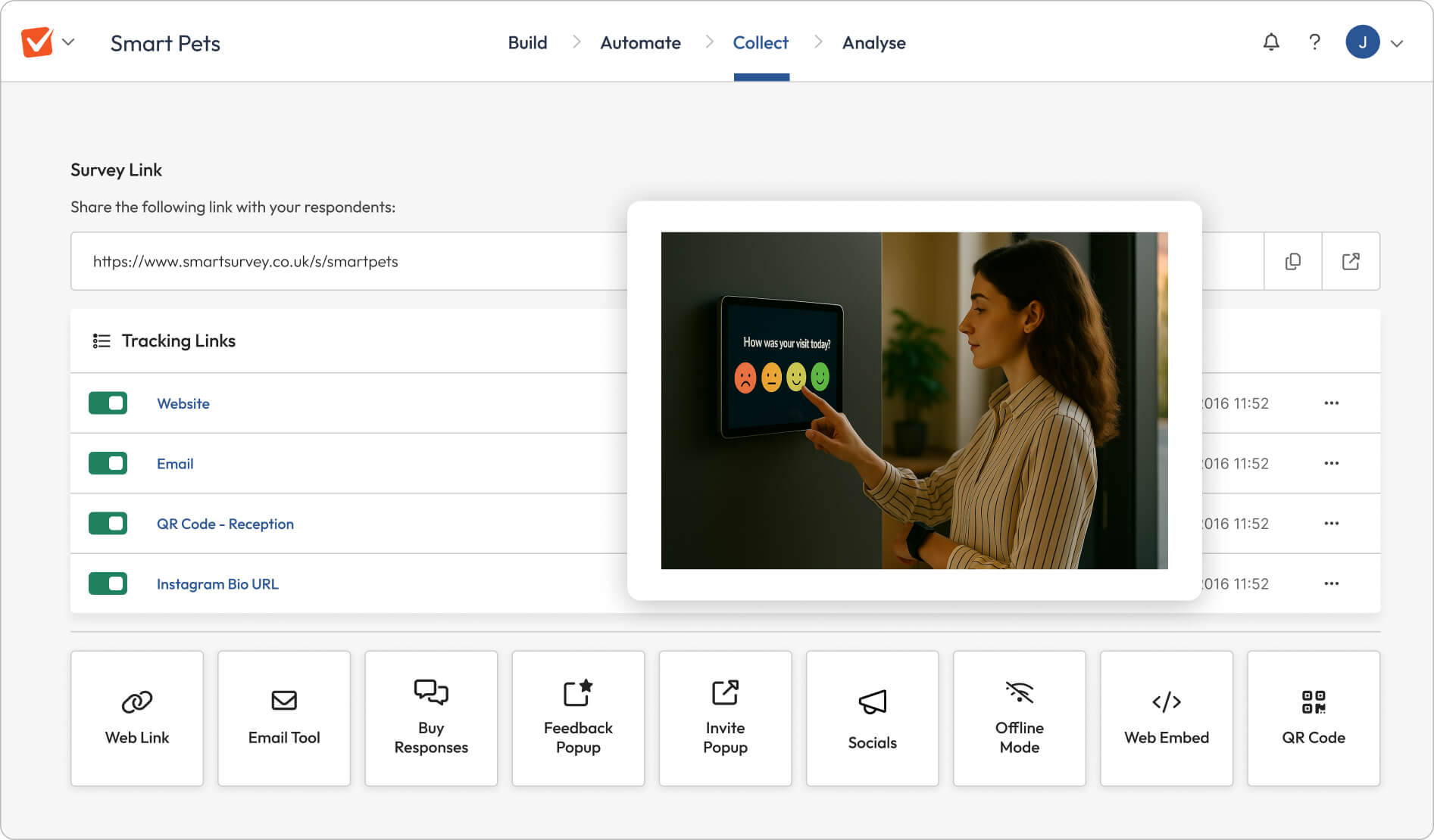 Use popups, intercepts, and embeds to capture feedback in the moment.