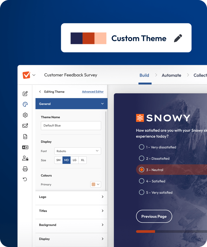 Use templates, question logic, and branding to create surveys peopleactually complete.
