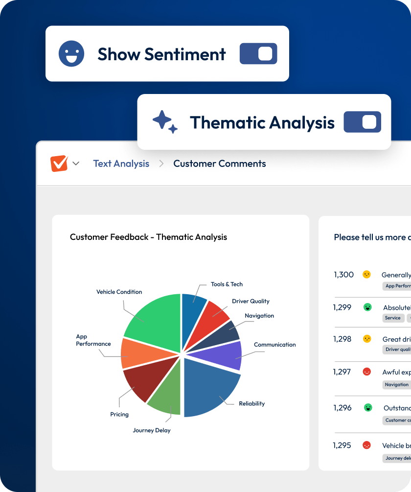 Spot themes and sentiment in open-text feedback in seconds.