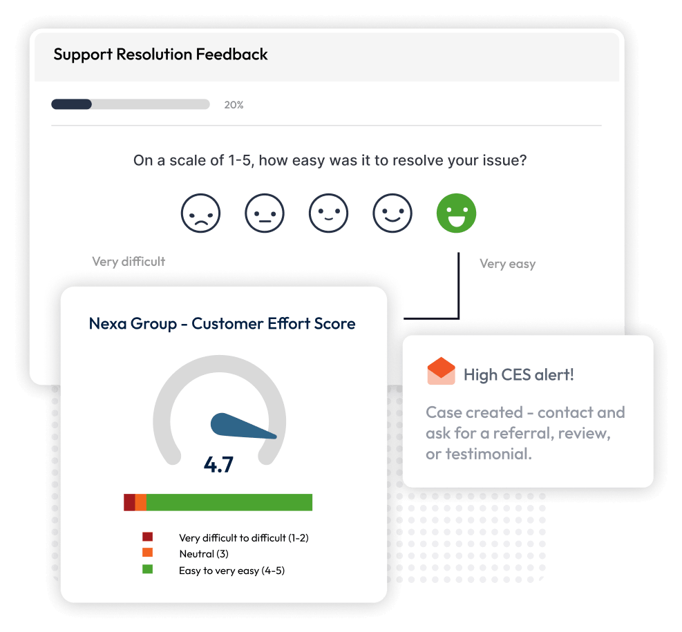 Trigger CES surveys right after support calls, checkouts, onboarding, or self-service.