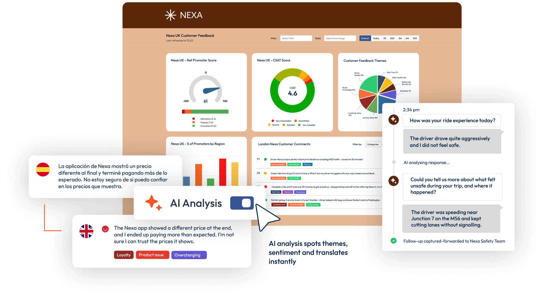 Sentiment analysis, automatic thematic categorisation, multi-language translation, and adaptive follow-up questions - all powered by AI. Get deeper better insights, faster.