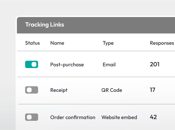 Tracking links let you collect feedback from everywhere without cloning the same survey. Less admin, more insight.