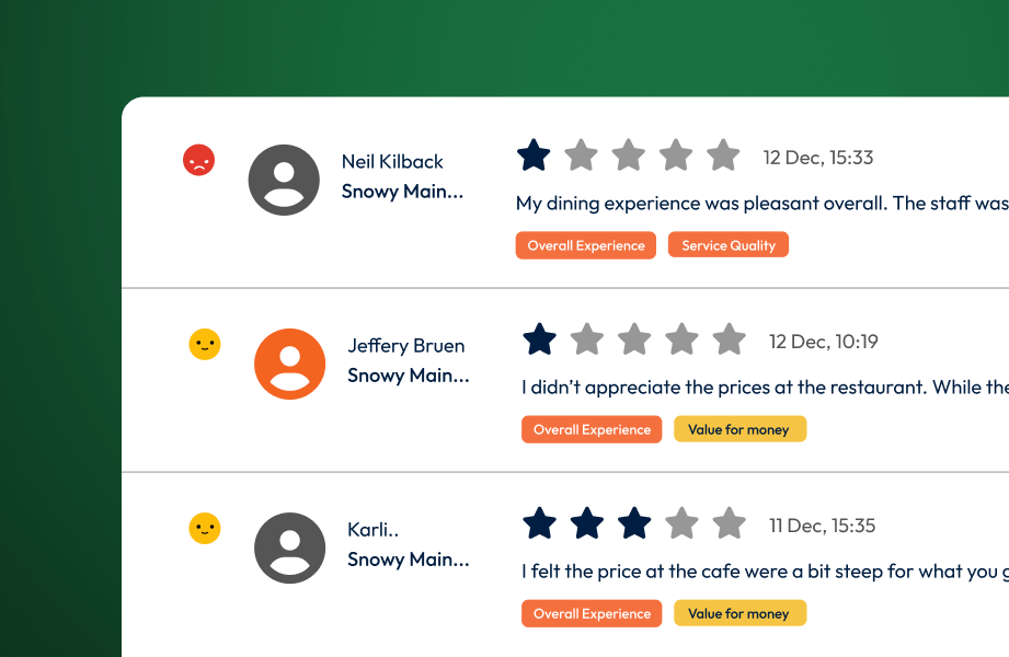 See every review in one place, spot the patterns, and fix what isn’t working