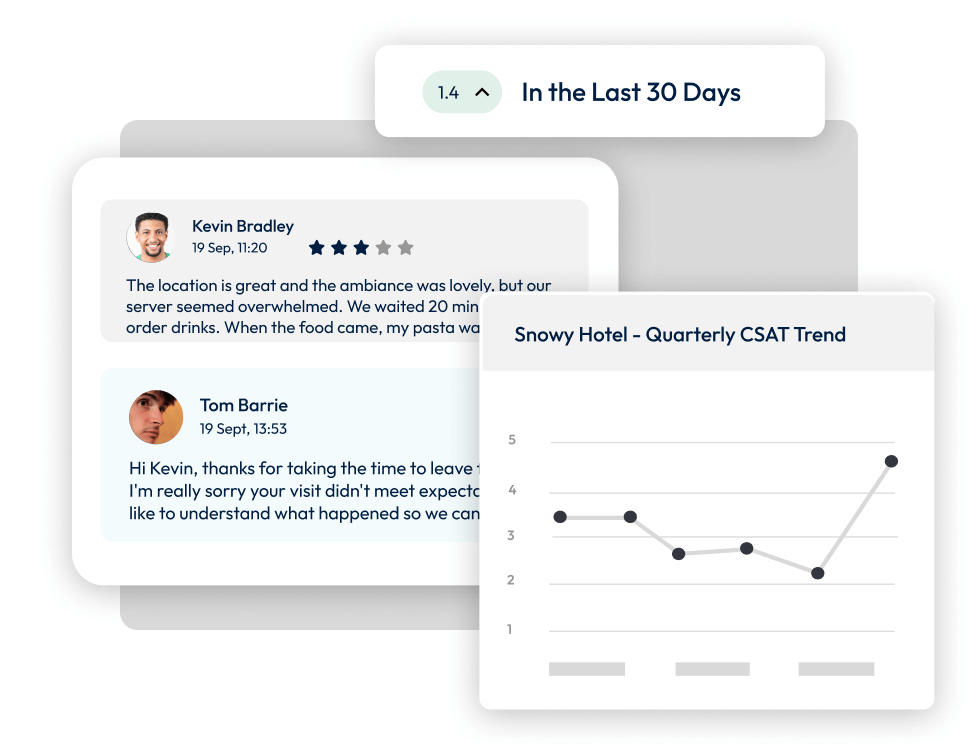 Spot negative reviews the moment they appear, understand what's driving positive and negative sentiment across all sources, and respond to reviews without leaving the platform.