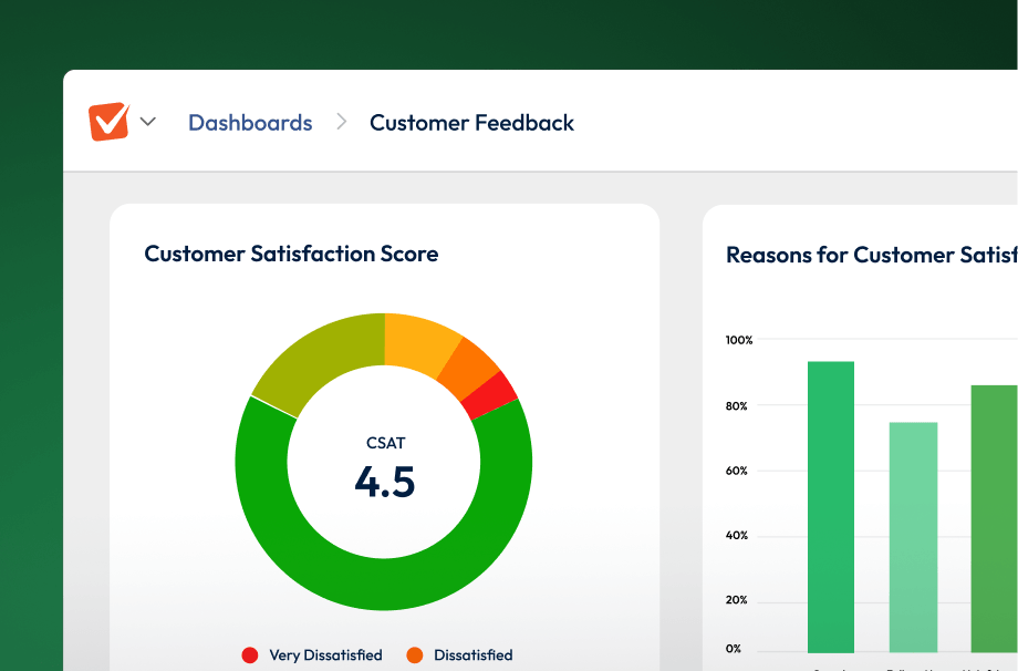 Dashboards and survey reports show key metrics right as they come in.