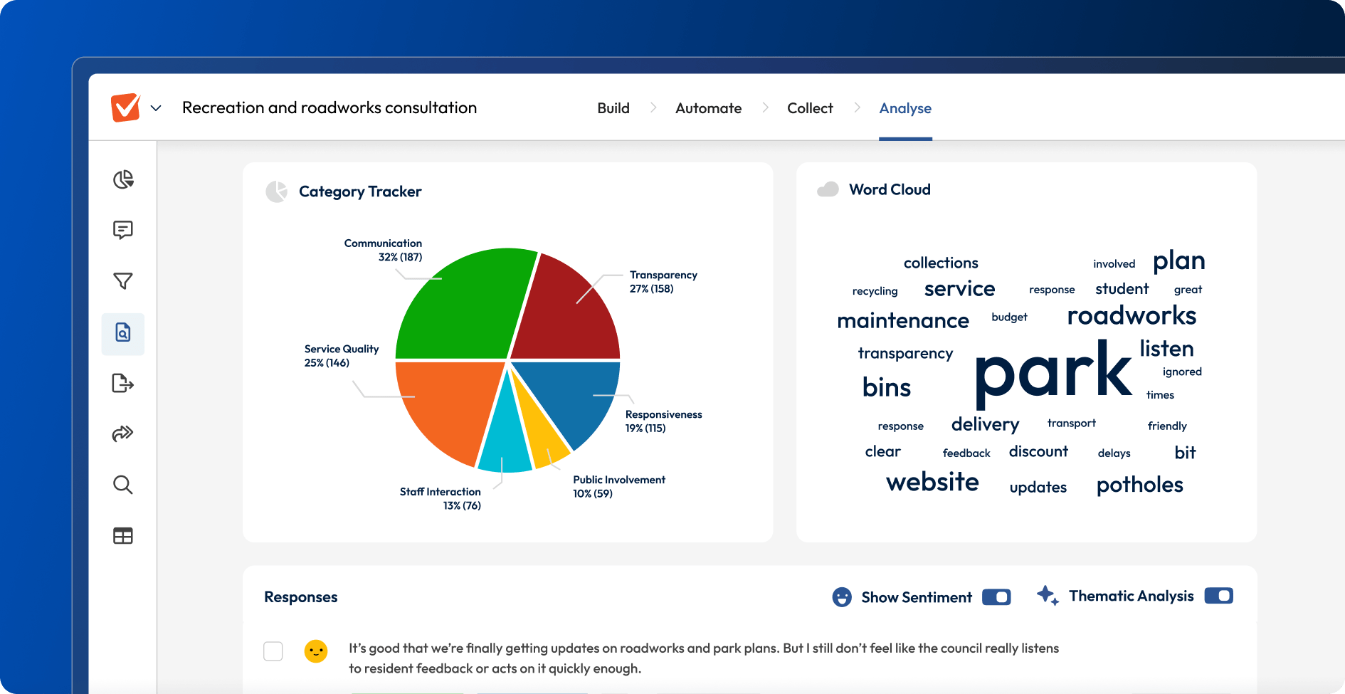 Run consultations at scale, understand what matters, and show communities their views drive real decisions with SmartCE™.