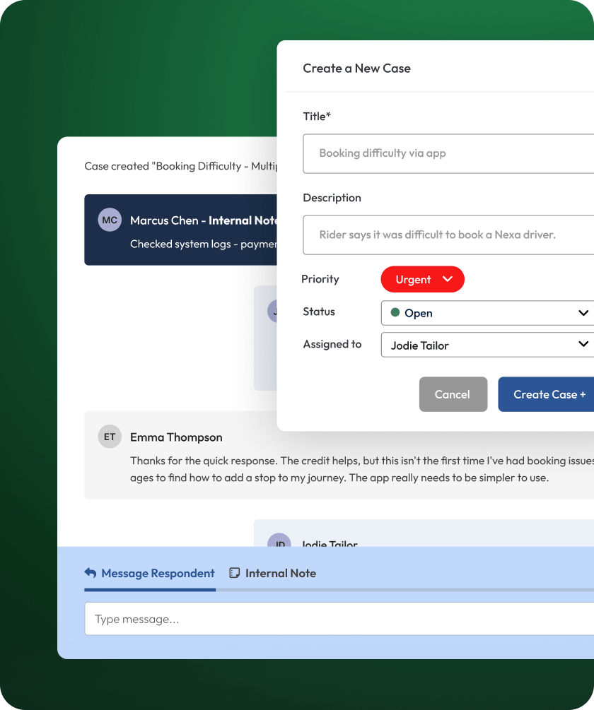 Built-in case management helps you close the loop fast on every single response