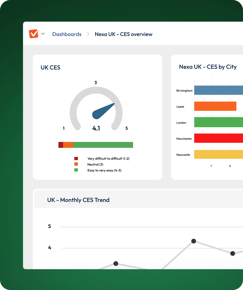 Trigger CES surveys right after support calls, checkouts, onboarding, or self-service.