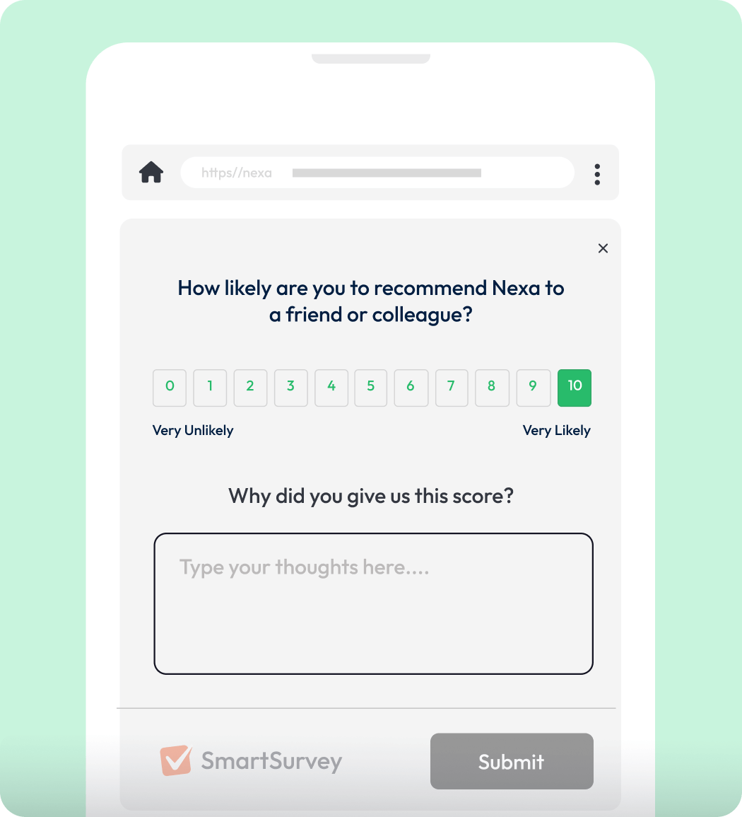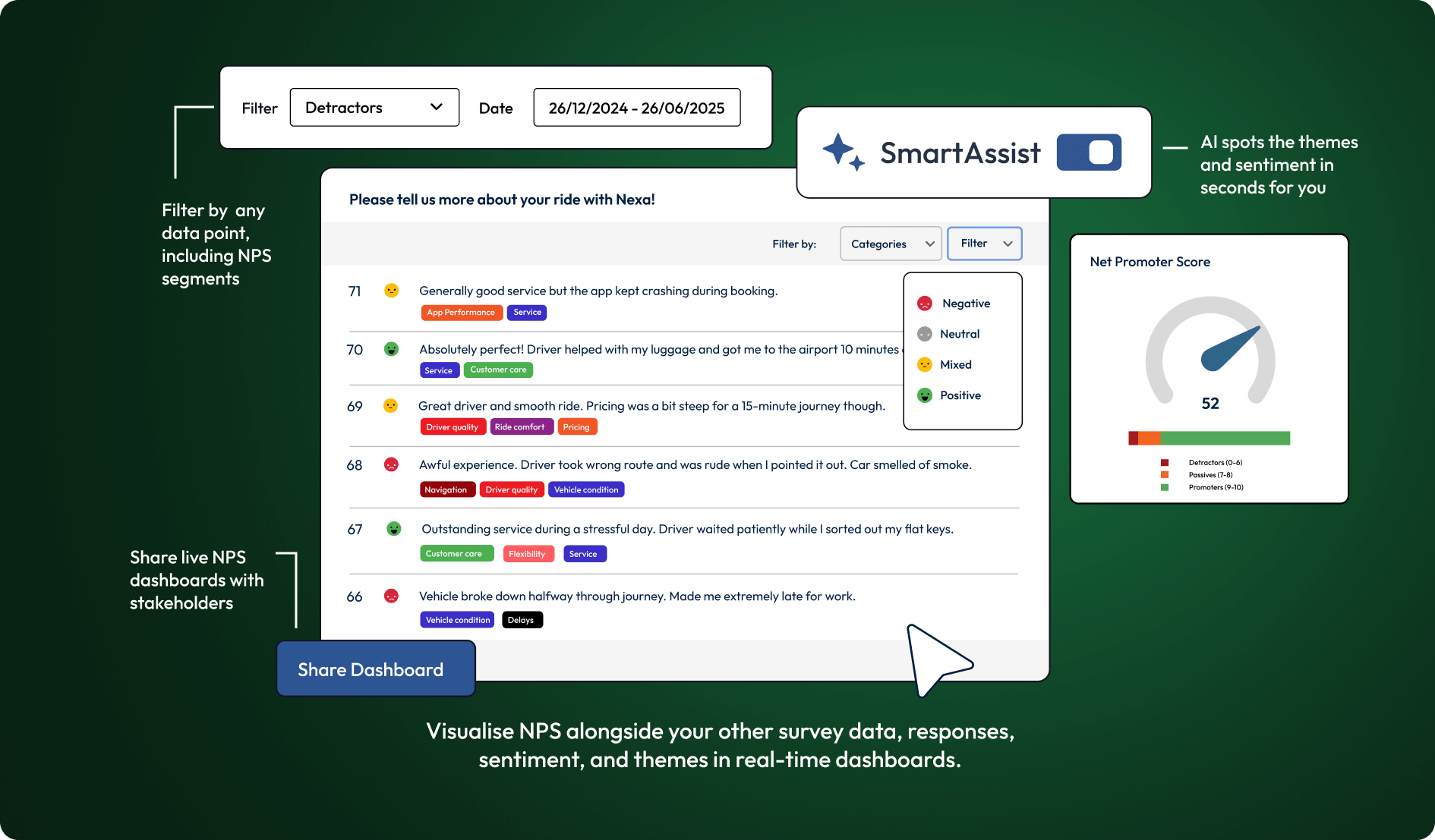 Yes. SmartSurvey is a fully-featured platform with advanced NPS tools. It’s often more flexible than specialist NPS-only software. You get trend tracking, cohort filtering and custom dashboards to help you run your full NPS programme, from collection to insight to action.