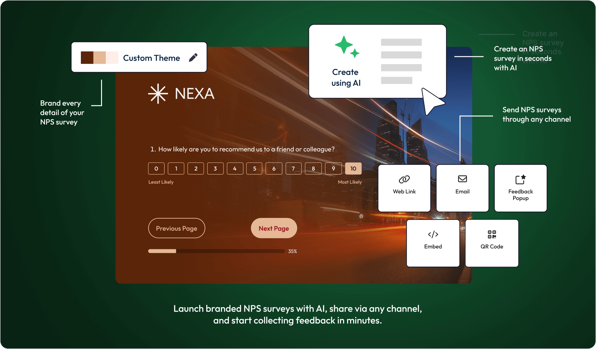 With skip logic and open-text insights built-in, you get the complete story, not just a score