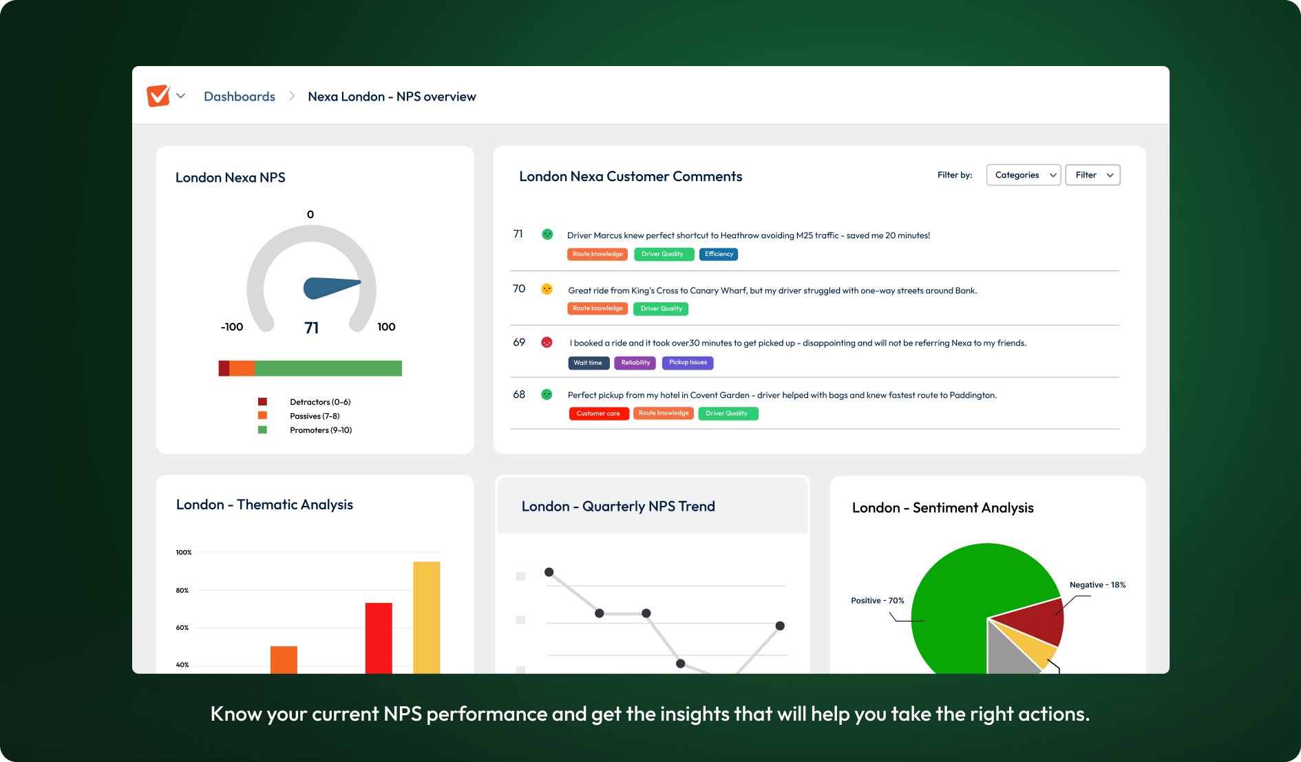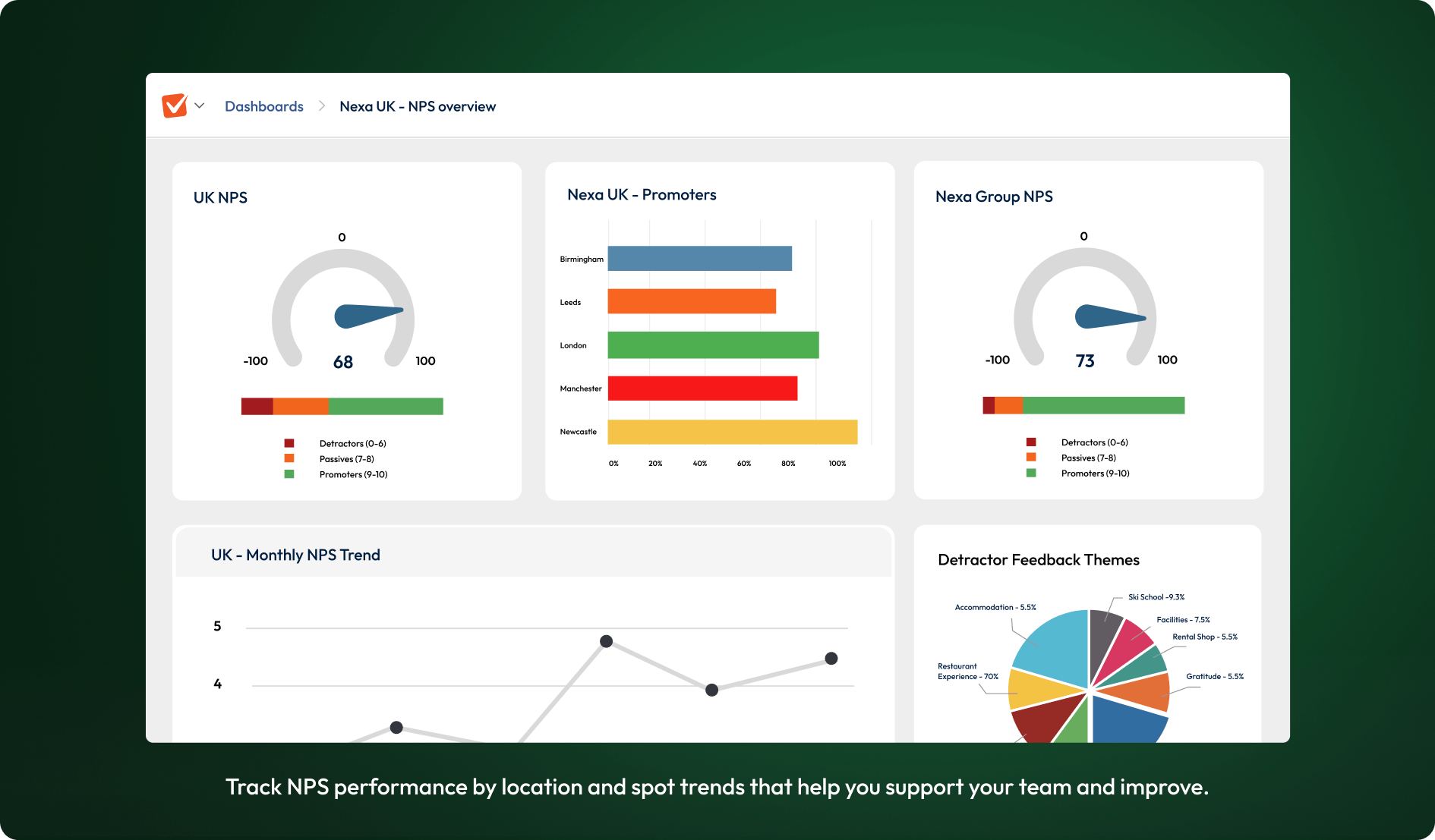 Real-time NPS dashboards show you shifts in sentiment as they happen; notifications enable rapid response