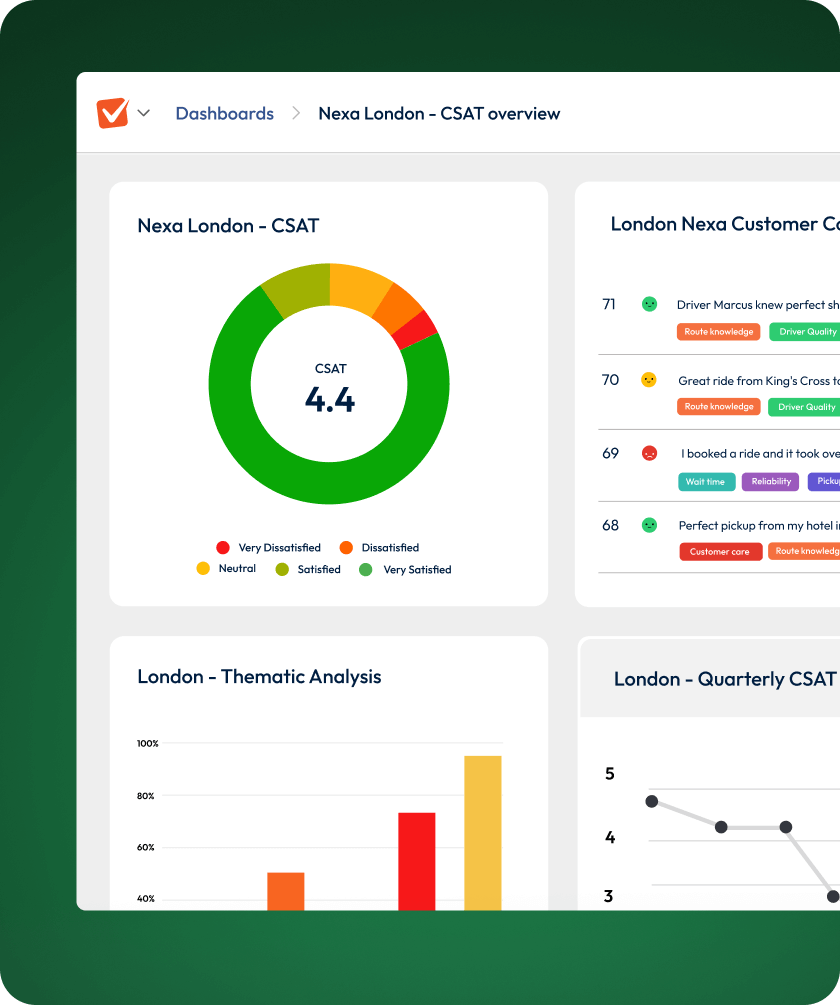 One platform unites surveys, reports, and alerts – so satisfaction never slips through the cracks