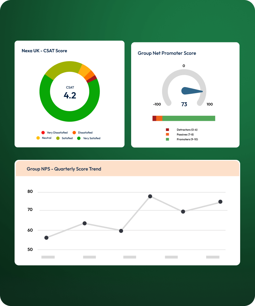 Capture satisfaction after key touchpoints. Surface unhappy customers fast, remove friction, and keep them coming back to do more business with you.