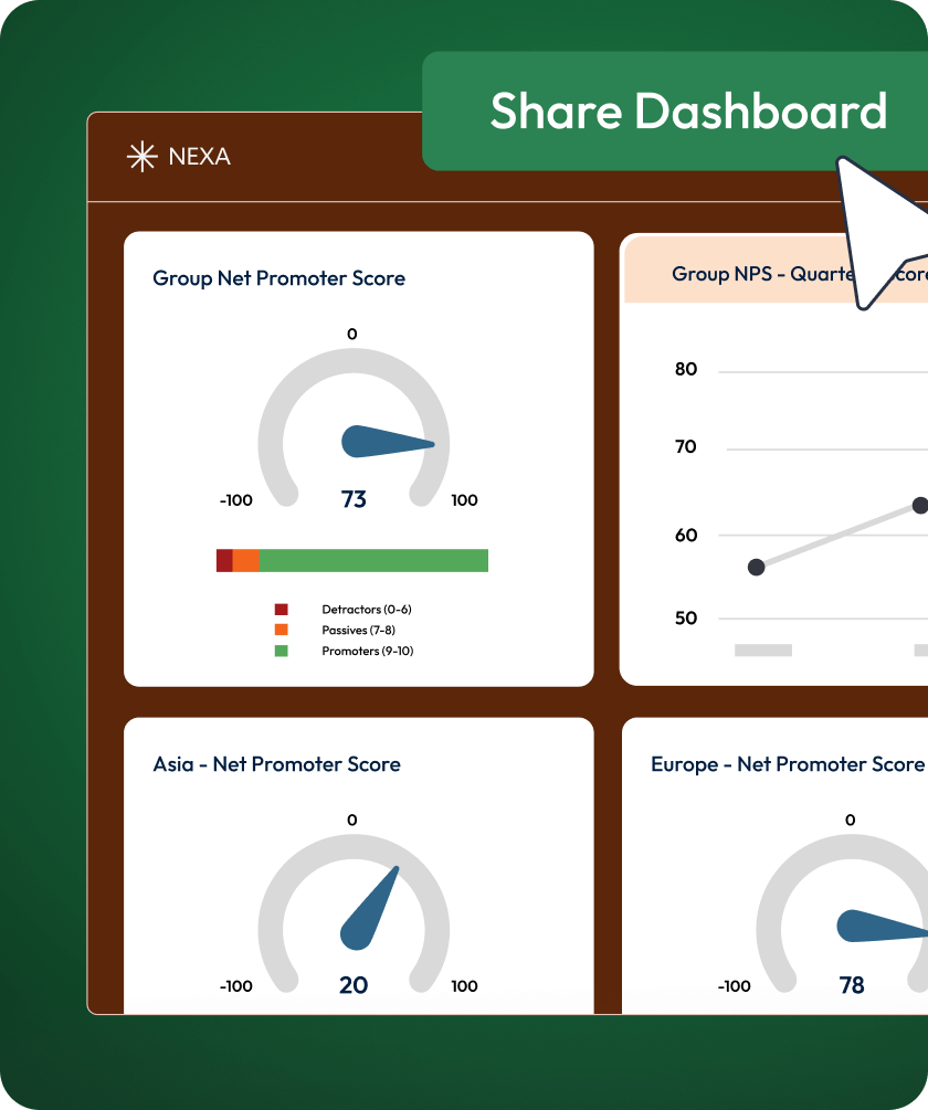 Act on insights, track improvements over time, and celebrate measurable improvements in your NPS.