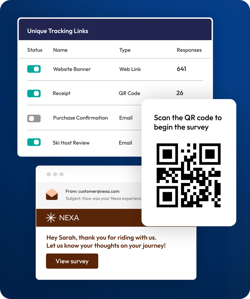 Reach your respondents and get more responses by sharing your surveys across the channels you choose.