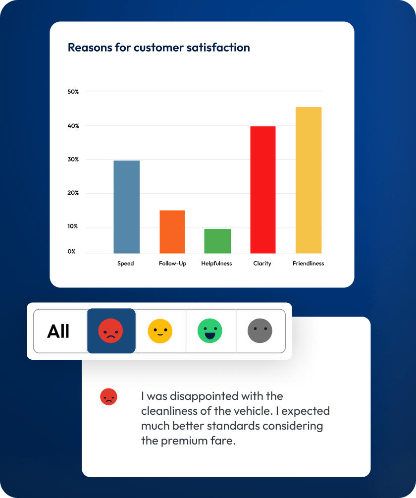 Get real-time insight into every response, uncover trends and sentiment, and export clear reports to share with your team.