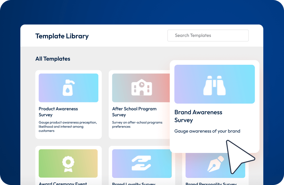 Choose from 130+ ready-made templates and launch your first survey in minutes.