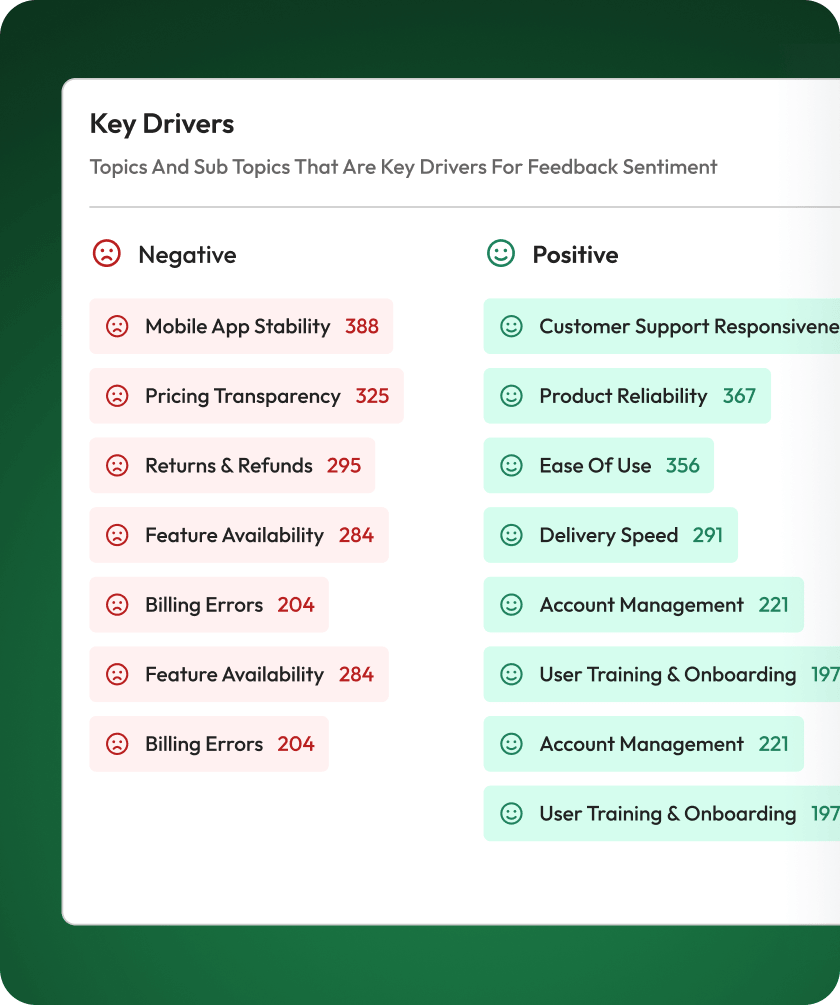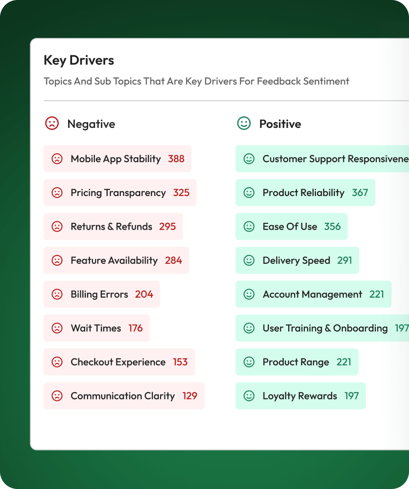 Find out what creates promoters and what’s pushing customers away. Pinpoint what to fix and what to double down on, so you can grow retention and revenue with confidence.