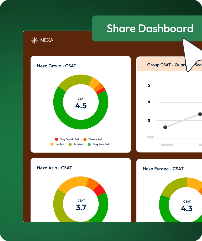 Yes, SmartSurvey enables you to conduct comprehensive analysis of feedback from various regions. Our interactive dashboards enable stakeholders to easily share and review CX survey results in real-time, ensuring all relevant teams and departments gain access to insights that are relevant to their specific language, region, department or location.