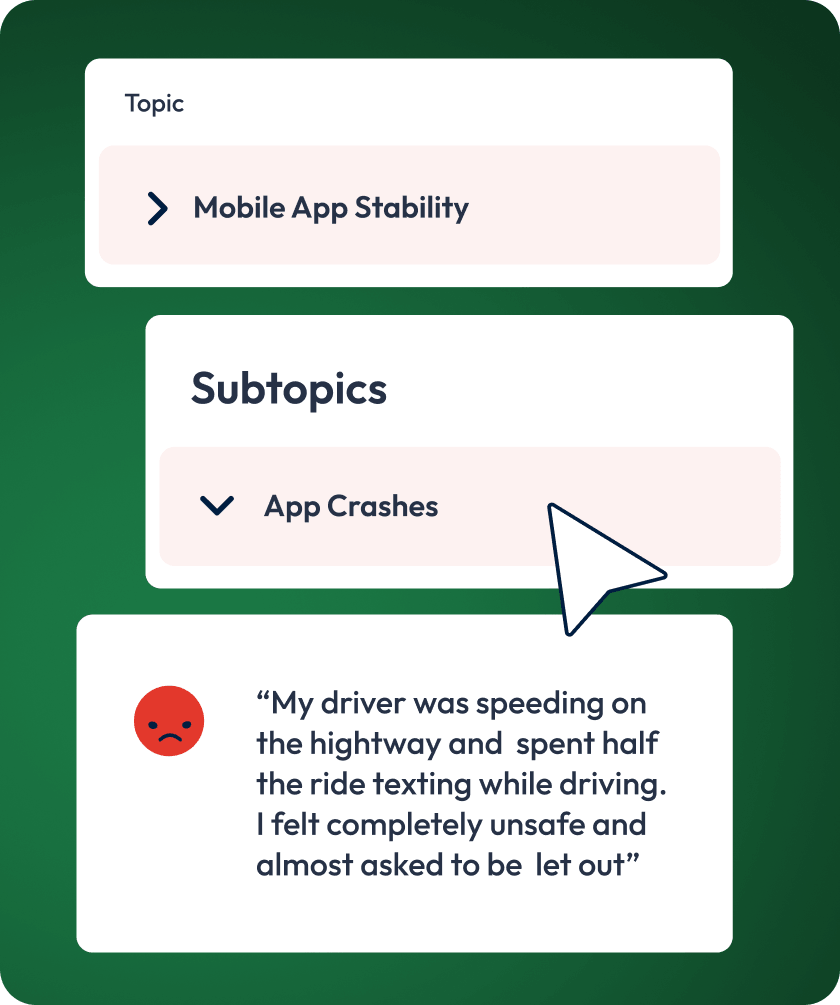 Surface themes, and find root causes, so you can prioritise actions on impact, not instinct.